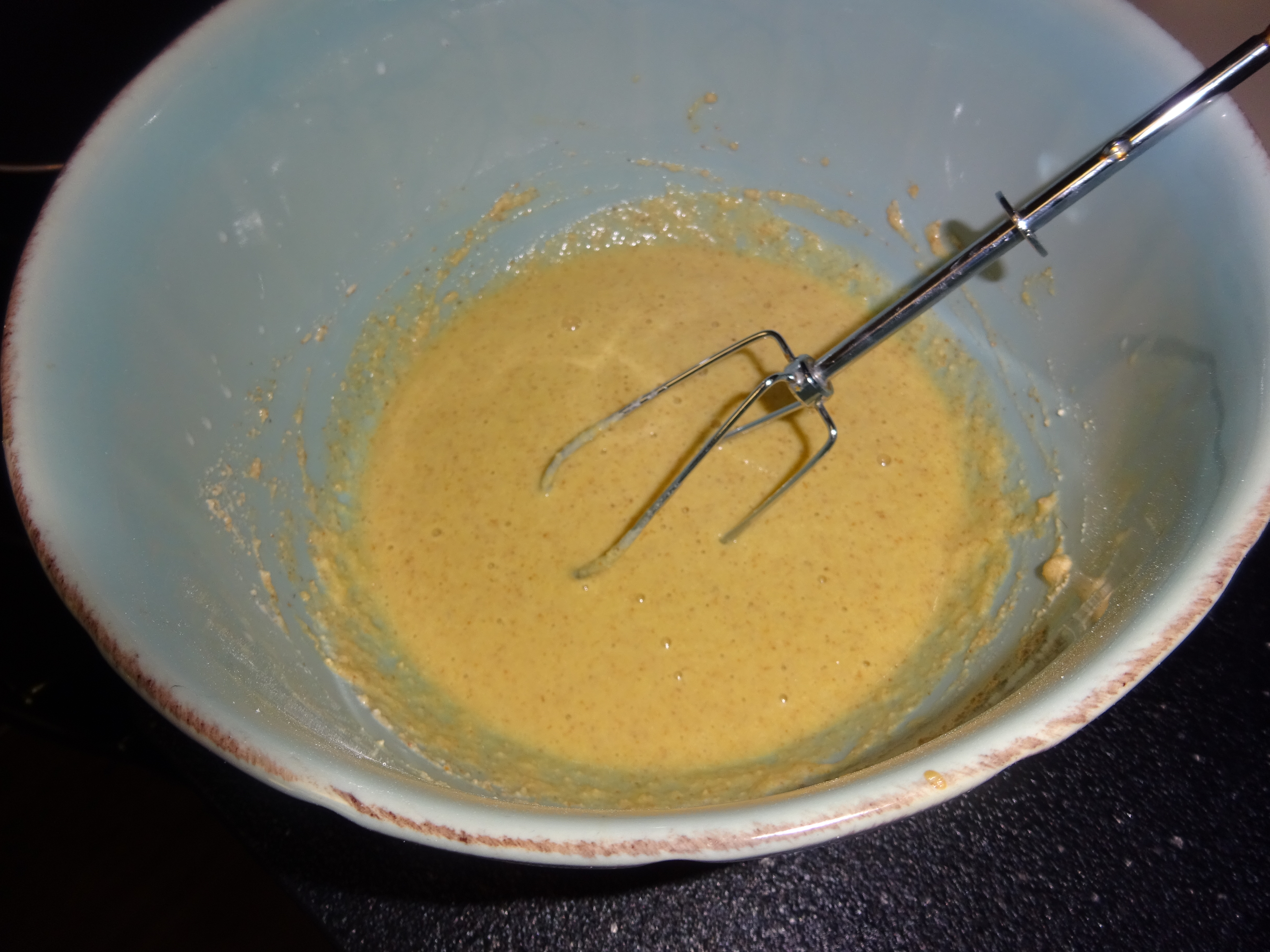 – Make your batter: In a large bowl, add the eggs and the milk. Mix these together and add a touch of vanilla and some cinnamon. This is what is should look like (with some bread in there)